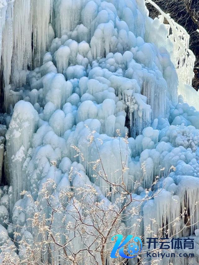踏入虎峪,仿佛步入一个晶莹晶莹的寰宇,沿着迤逦的山路前行,不错赏玩到8处、总面积2万余平日米的冰瀑景不雅,每一处齐各不相似。弘大的冰瀑如同魁岸壮阔的立体画卷,从山间高悬而下,声威磅礴。冰柱重重叠叠,粗细不一,在阳光下精明着蓝白相间的色泽,宛如被大当然尽心砥砺的水晶。